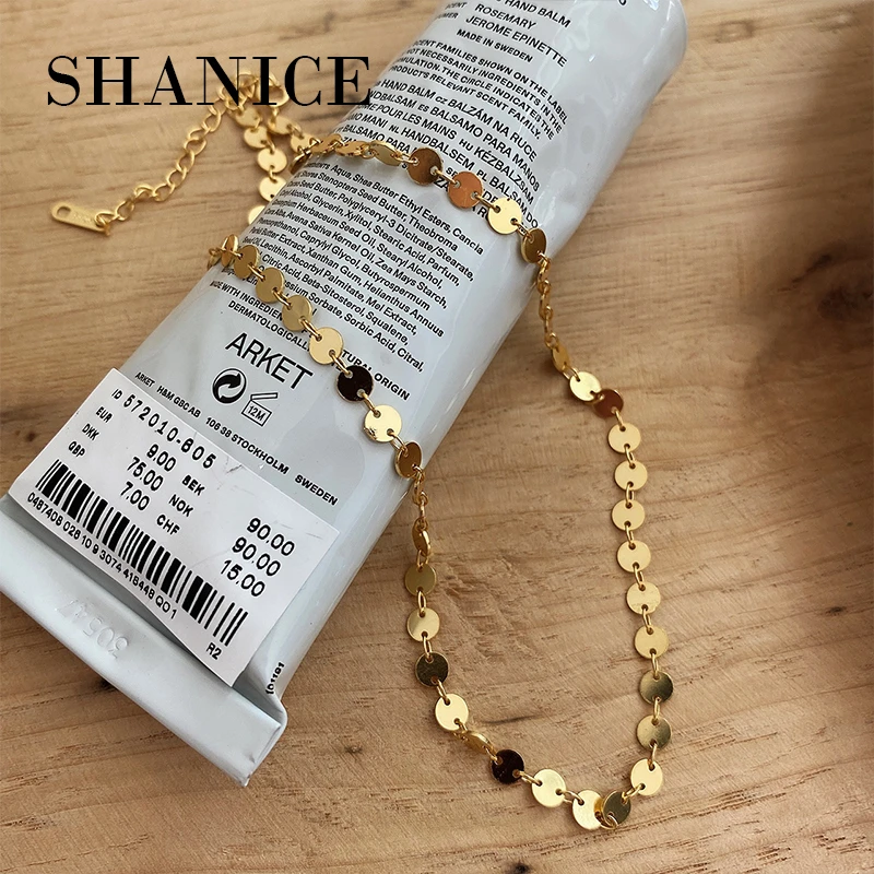 SHANICE 100% 925 Sterling Silver Necklace Round sequins gold Necklace Women Choker Necklaces Pendants Femme Chain jewelry gifts