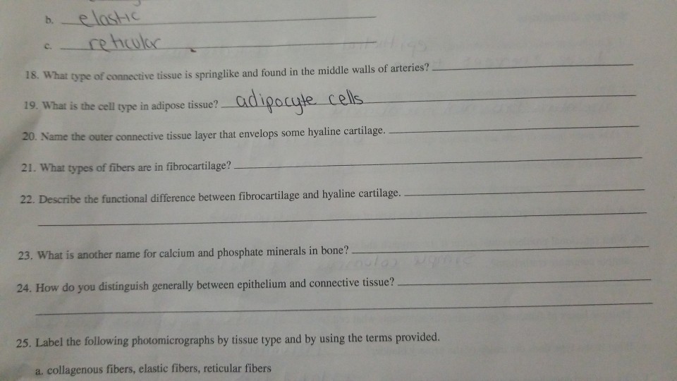 PRACTICAL 2 -TISSUES Flashcards | Quizlet In connective tissue there are more non-cellular structures present such as fibers or a matrix. Label the following photomicrographs by tissue type and by using the terms provided. a. a. elastic fibers, b. collagenous fibers, c. reticular fibers. b. a. cilia, b. nucleus, c. basement membrane.