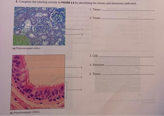 Solved Label the following photomicrographs by tissue type | Chegg.com question: label the following photomicrographs by tissue type and by using the terms provided a. dollagenous fibers, elastic fibers, reticular fibers 2 courtesy of eric wise tissue name (400) b) basement membrane, cilia, nucleus cilia -2 nucleus - basement humbrane courtesy of eric wise tissue name (400x) c. intercalated discs, nucleus, …