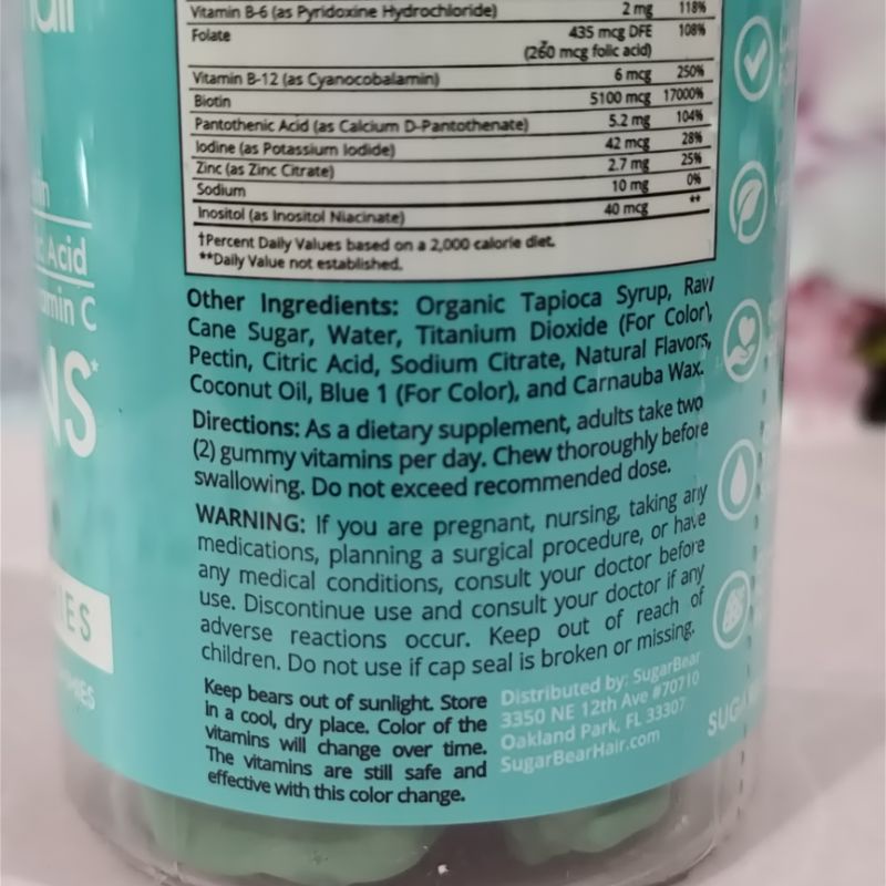 Hair Vitamins - Sugarbear® Vegan Vitamin Care Sugarbear Hair Vitamins - 8 Month $199.99 $239.92 Sugarbear Hair Vitamins Packed with over 9 ingredients including: Vitamin B8 Inositol and over 5,000 mcg of Biotin. Zinc and Biotin both contribute to the maintenance of normal hair. Zinc contributes to the maintenance of normal nails.*