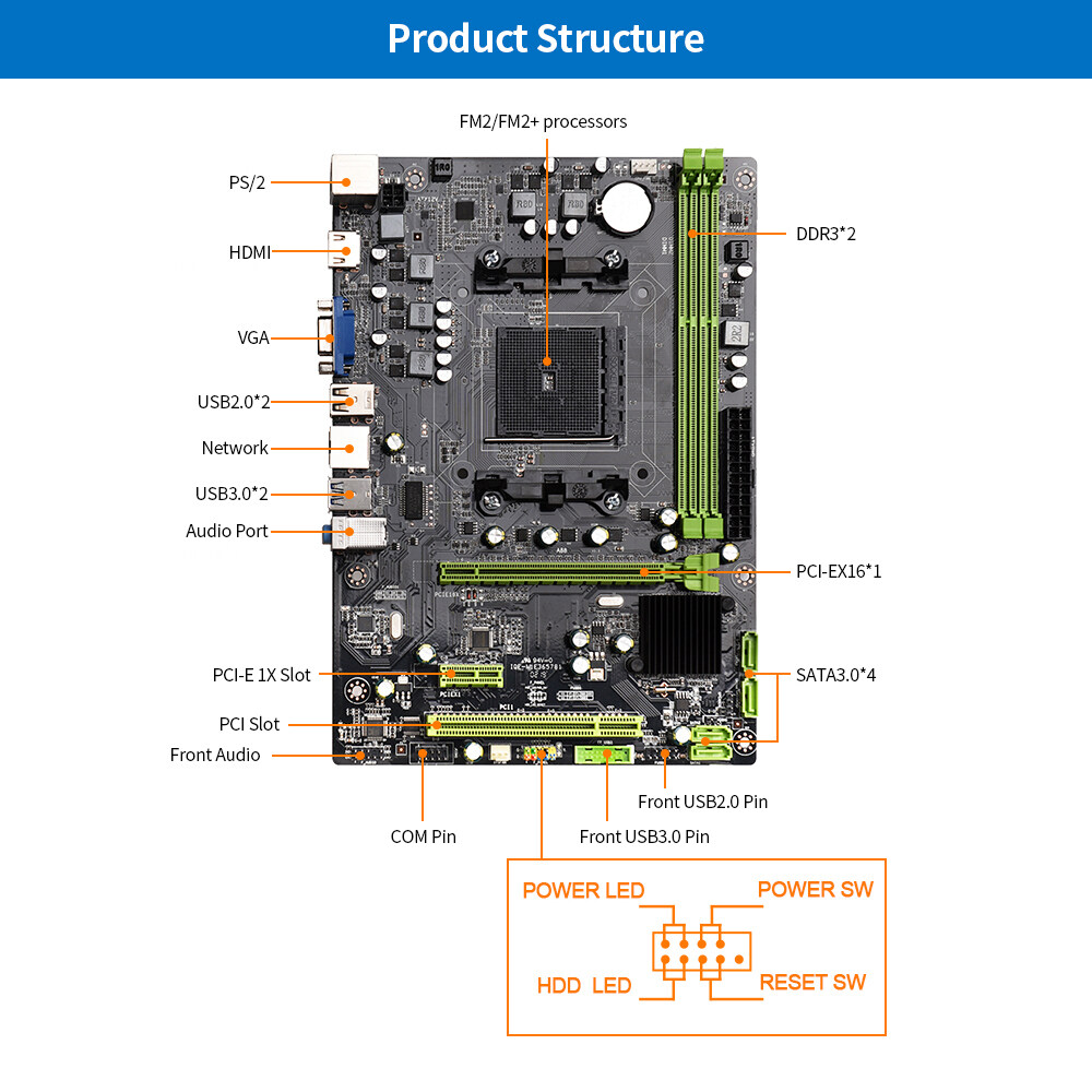 Motherboard Components Labeled - Motherboard Parts and Functions Join us as we take you on a guided tour of the different motherboard components (complete with photos and plain English descriptions): 1. Back Panel Connectors & Ports Connectors and ports for connecting the computer to external devices such as display ports, audio ports, USB ports, Ethernet ports, PS/2 ports etc.