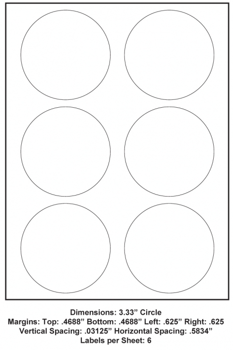 3.33" Circle Blank Label Template - OL375 - OnlineLabels Description: OL375 - 3.33" Circle template provided free to customers of OnlineLabels.com. Sheet Size: 8.5" x 11" Labels Per Sheet: