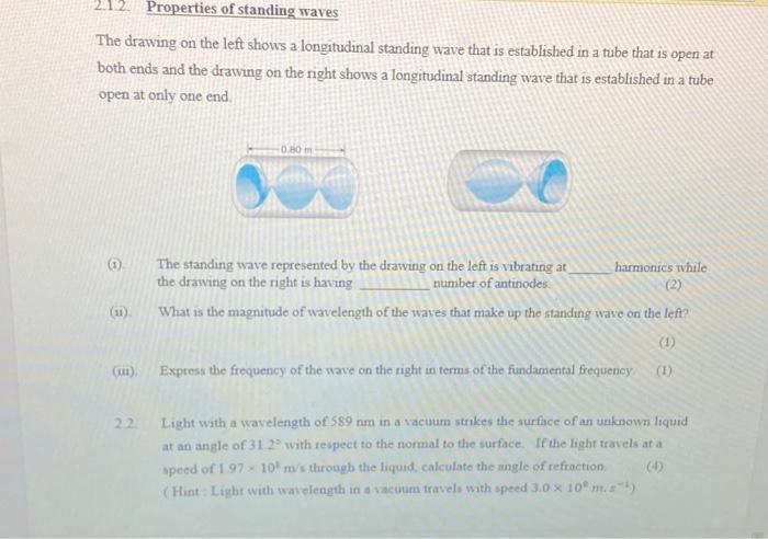 Standing Wave on a string - BYJUS The simplest standing wave formed in this condition is one quarter a wavelength long. The next possible standing wave will be formed by adding both node and antinode. The length of this wave will be three-quarters of the wavelength. In general, the wavelength of the wave can be written as λ = 4L/n , here n = 1,2,3…..