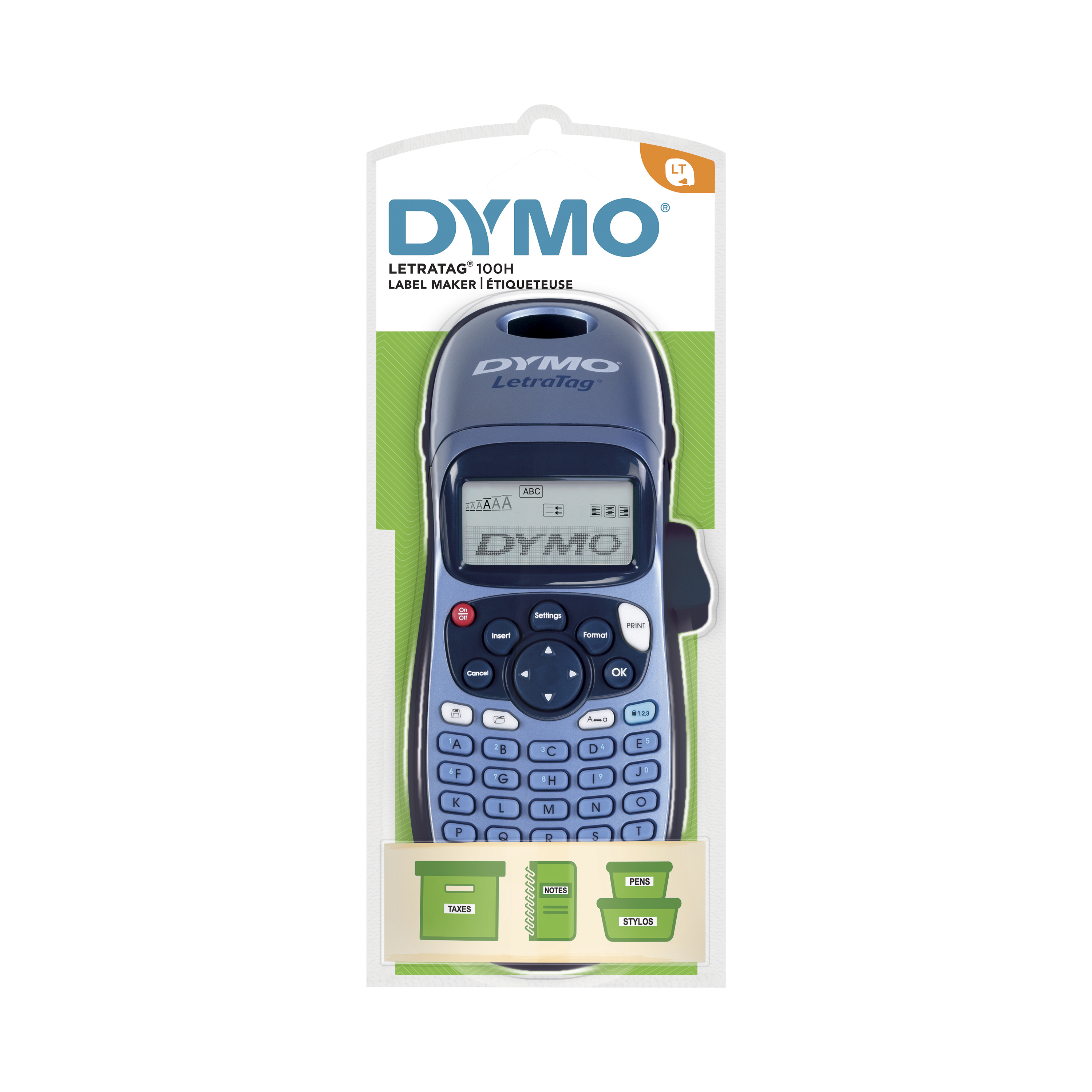 DYMO LetraTag 100T Label Maker | Dymo Includes: DYMO LetraTag 100T printer, black on white labels (1/2-inch x 13-foot), instruction manual, and warranty card; Specifications Specifications Item # 1733011. Dimensions: 8.6" x 3.268" x 9" Color: Blue. Label Compatibility: LetraTag. Best For Best For Home Organization. DYMO labels are perfect for home organization projects. ...