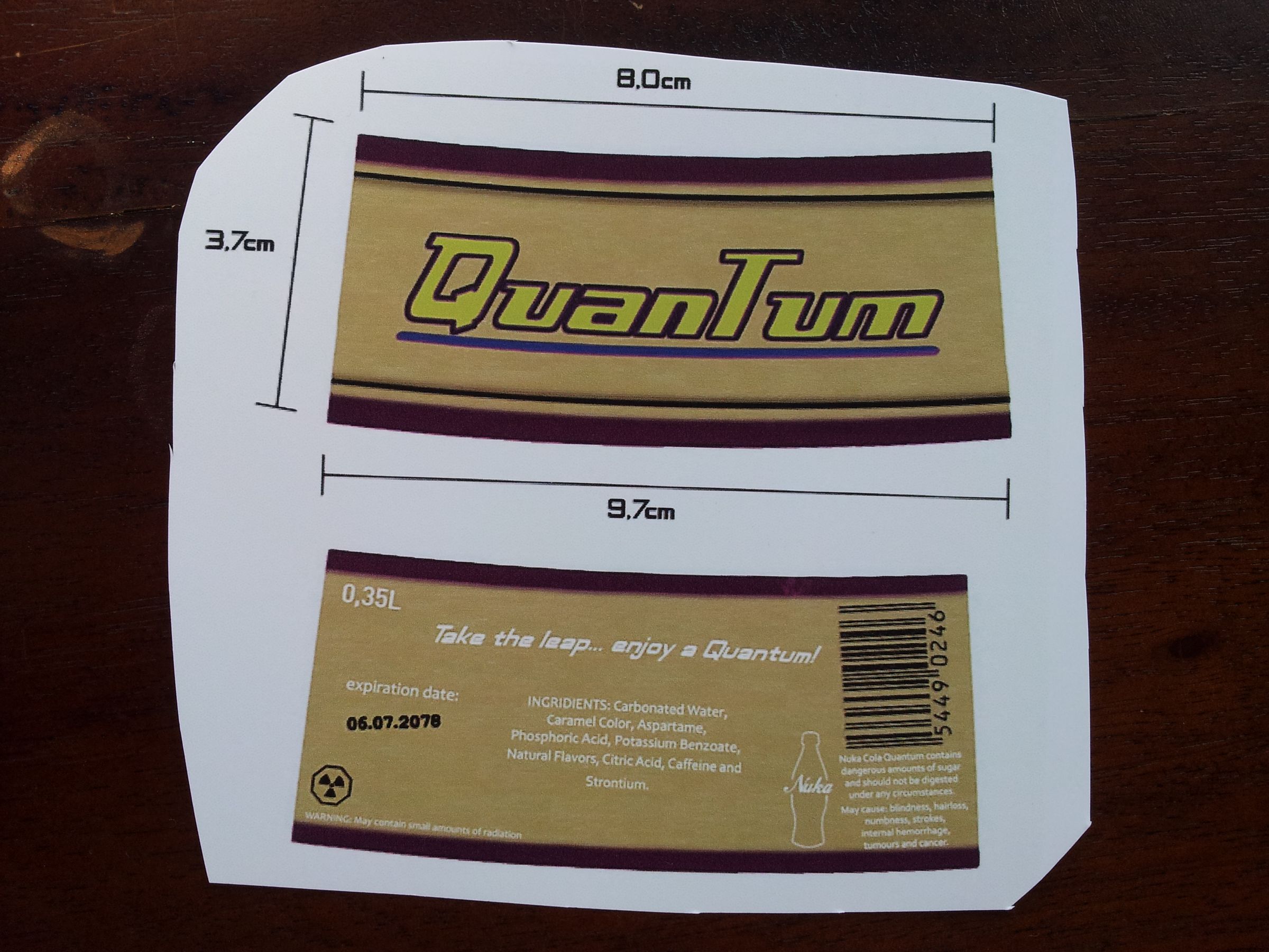 Nuka Cola Quartz | Etsy Check out our nuka cola quartz selection for the very best in unique or custom, handmade pieces from our memorabilia shops. Make Nuka-Cola Quantum : 7 Steps (with Pictures) - Instructables Put the glue along the two ends and in a "Z" on each segment. Carefully position the label and use the rubber bands to hold it down for the glue to set. Once set use your sharp knife to trim away any glue that spilled out from the the sides. Add Tip Ask Question Comment Download Step 4: Electronics Tape the three button cells positive to negative. [How to] Make your own Nuka Cola bottles. - reddit 3: After shaving, take your bottle back inside and you should have this. 4: Now carefully and slowly cut out your labels. 5: Glue your cap to the top of your bottle. There will probably be a little bit of white from the "Coca Cola" on the cap left visible but it's not very noticable. 6: Glue the label to the bottle. List of Nuka-Cola variants | Fallout Mod Wiki | Fandom With Nuka-Cola Quartz being promoted at the same time, the marketing team was unsure how to promote both products simultaneously. For these reasons, Bradberton pushed back Nuka-Cola Clear production until at least 2079. [30] The formula was locked away in the Nuka-Cola plant in Arlington, Virginia, sealed by the Great War. [31] Mixes