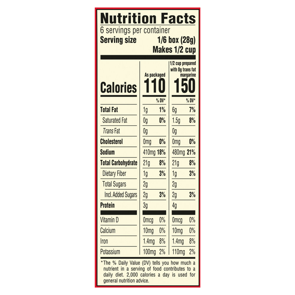 Stove top stuffing nutrition label