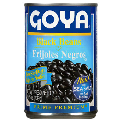 Goya Black Beans, Low Sodium, Non-GMO, 15.5 Ounce Can Goya is proud to announce that our great signature Black Beans now have a flavorful low-sodium option! With up to two thirds less sodium than our standard Blue Label line, you and your family have even more healthful alternatives. Product details Is Discontinued By Manufacturer : No