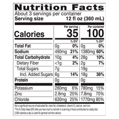 Amazon.com: Pedialyte AdvancedCare Plus Electrolyte Drink, 1 Liter ... Pedialyte AdvancedCare Plus also has PreActiv Prebiotics to help promote a healthy digestive system. *60 mEq sodium electrolytes per liter vs 45 mEq in original Pedialyte Product details Product Dimensions : 3.4 x 3.4 x 8.3 inches; 2.11 Pounds Pedialyte Sport Nutrition Facts - Eat This Much Pedialyte Sport Nutrition Facts - Eat This Much Pedialyte Sport Abbott Find on Amazon Percent calories from... Quick stats 30 Calories 9g Carbs (8.5g net carbs) 0g Fat 0g Protein No price info Try our free Diet Generator I want to eat calories in meals. I like to eat Not the food you're looking for? Try these: Electrolyte Solution, Lemon Lime