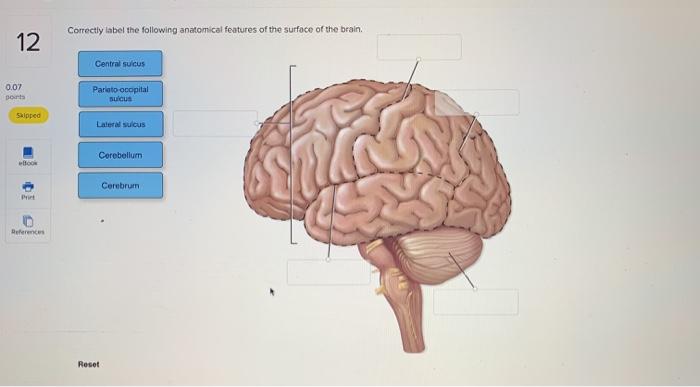 Correctly label the following anatomical features of the surface of the brain.. Correctly label the following anatomical features of the surface of the ... Correctly label the following anatomical features of the surface of the brain. - 248612. Log In; All. English. ... Engineering. cliffbrown9056 +10. Answered. 6 months ago. Health. High School. Correctly label the following anatomical features of the surface of the brain. See answer. Answer. 5 (1 оценка) 0. Correctly label the following anatomical features of the surface of the ... Correctly label the following anatomical features of the surface of the brain. Q&ABy tamdoan·February 28, 2022·0 Comment 4 Correctly label the following anatomical features of the surface of the brain. Cerebellum 4 points Lateral sulcus eBook Print References Central sulcus Gyri Brainstem Cerebrum Temporal lobe Spinal cord l3brainsurfaceanatomicalfeatures2.png - Correctly label the following ... NUR 220 l3brainsurfaceanatomicalfeatures2.png - Correctly label the following anatomical features of the surface of the brain. Cerebellum Central sulcus Central l3brainsurfaceanatomicalfeatures2.png - Correctly label the... School Brooklyn Technical High School Course Title NUR 220 Uploaded By cybarzz Pages 1 Brain & CN Worksheet Flashcards | Quizlet Correctly label the following functional regions of the cerebral cortex. Consider a situation where a stroke or mechanical trauma has occurred resulting in damage to one of the areas of the brain indicated in the image. Drag each label into the proper location in order to identify the area that would most likely have been affected.
