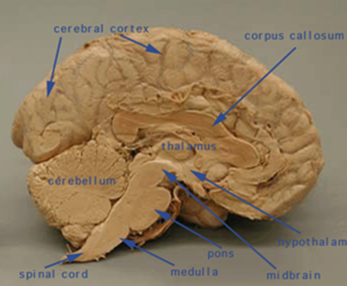 Correctly label the following anatomical features of the surface of the ... MEDIAL SURFACE OF THE BRAIN A, Lobes and functional areas. The cingulate cortex is labeled the limbic lobe, reflecting its association with other limbic forebrain structures and with hypothalamic control of the autonomic nervous system. Functional areas of the cortex, particularly those involved with vision, are best seen on a midsagittal view.