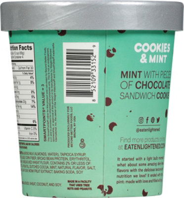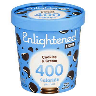 Cookies & Cream Light Ice Cream | Enlightened $48 minimum order Calories 130 Sugar 7g Fat 3.5g Net Carbs 10g Kosher *Nutrition facts are per 2/3-cup serving (3 servings per pint) Nutrition & Ingredients Fewer Calories, More Flavor From creamy and delicious classics to the flavors of your wildest dreams, these impossibly indulgent pints are made with less sugar than traditional ice cream. Find enlightened-ice-cream Calories & Nutrition Facts | MyFitnessPal Enlightened, 0.5 cup Calories: 60 • Carbs: 14 g • Fat: 2 g • Protein: 6 g 60 Enlightened Frozen Hot Cocoa Ice Cream Enlightened, 69 g Calories: 90 • Carbs: 18 g • Fat: 3 g • Protein: 7 g 90 Ice cream sandwixh Enlightened, 1 each Calories: 100 • Carbs: 23 g • Fat: 3 g • Protein: 7 g 100 Ice Cream, Ice Cream Cake Enlightened Keto, 0.67 cup Calories in Enlightened Butter Pecan Ice Cream and Nutrition Facts 14g. Protein. 7g. There are 100 calories in 1/2 cup (70 g) of Enlightened Butter Pecan Ice Cream. Calorie breakdown: 39% fat, 41% carbs, 20% protein. Enlightened Ice Cream Allergy and Ingredient Information Enlightened Ice Cream ICE CREAM, UPC Code 852109331703 Manufactured by Beyond Better Foods, LLC. ... Nutrition Label. Nutrition Facts. Serving Size 0.50 cup. Servings Per Container 4.00. Amount Per Serving. Calories 90 Calories from Fat 25 % Daily Value*