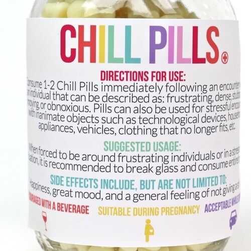 Chill Pills Gag Gift & Free Printable Labels - Pinterest FREE Silhouette Studio Cut File for Chill Pill Bottle Labels. A fun gag gift idea ... Chill Pills Gag Gift & Free Printable Labels. There is power in ... Chill Pill Gifts for Teachers Funny Printable Gifts - Etsy This listing is for a PNG file that you can use to design and print your own chill pill labels. The background is transparent and the design is simple so ...