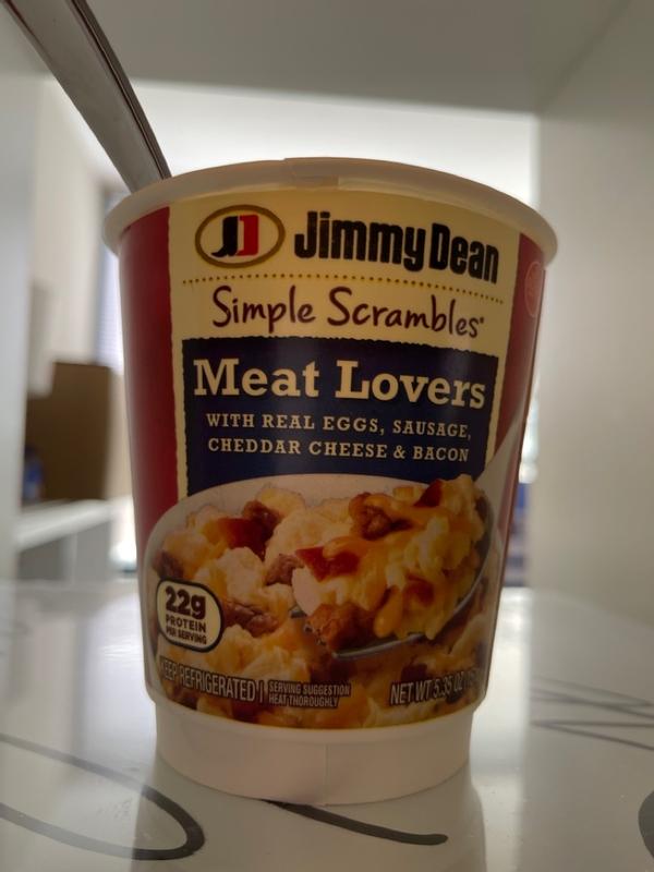Jimmy Dean Simple Scrambles® Meat Lovers, 5.35 oz. - amazon.com Jimmy Dean Simple Scrambles Meat Lovers, 5.35 oz. Wake up and enjoy a fresh-made breakfast with Jimmy Dean Meat Lovers Simple Scrambles. Made with two real eggs, premium pork sausage, bacon, and cheddar cheese, our Simple Scrambles are packed with 23 grams of protein per serving for a hearty breakfast that’s ready in seconds. Jimmy Dean Simple Scrambles : r/keto - Reddit Aug 8, 2018 · It's so easy to do your own scrambles. Just have the veggies and meats and cheese prepped ahead of time (leftovers work great). In the morning, throw everything together in a bowl with your eggs and mix it all up. Then "pulse cook" -- 60 seconds, stir, 30 seconds, stir, and repeat until set. Very quick.