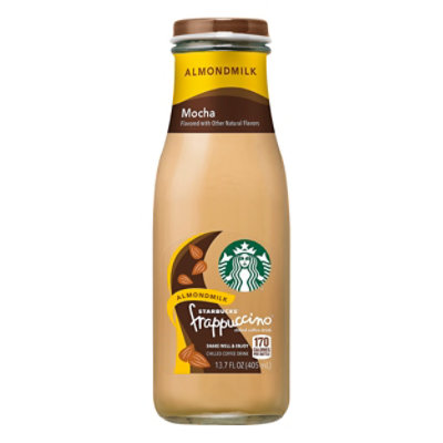 Calories in Starbucks Almond Milk Mocha Frappuccino and Nutrition Facts There are 170 calories in 1 bottle (13.7 oz) of Starbucks Almond Milk Mocha Frappuccino. Get full nutrition facts for other Starbucks products and all your other favorite brands. ... There are 170 calories in 1 bottle (13.7 oz) of Starbucks Almond Milk Mocha Frappuccino. Calorie breakdown: 26% fat, 69% carbs, 5% protein. Related Iced Coffee ... Nutrition | Starbucks Here you will find the allergen and nutrition information for all the Starbucks food and beverages you love. Beverage Nutritional Information This guide contains nutritional information on many of our classic beverages you enjoy at Starbucks. Download Beverage Nutritional PDF Download Beverage Allergen PDF